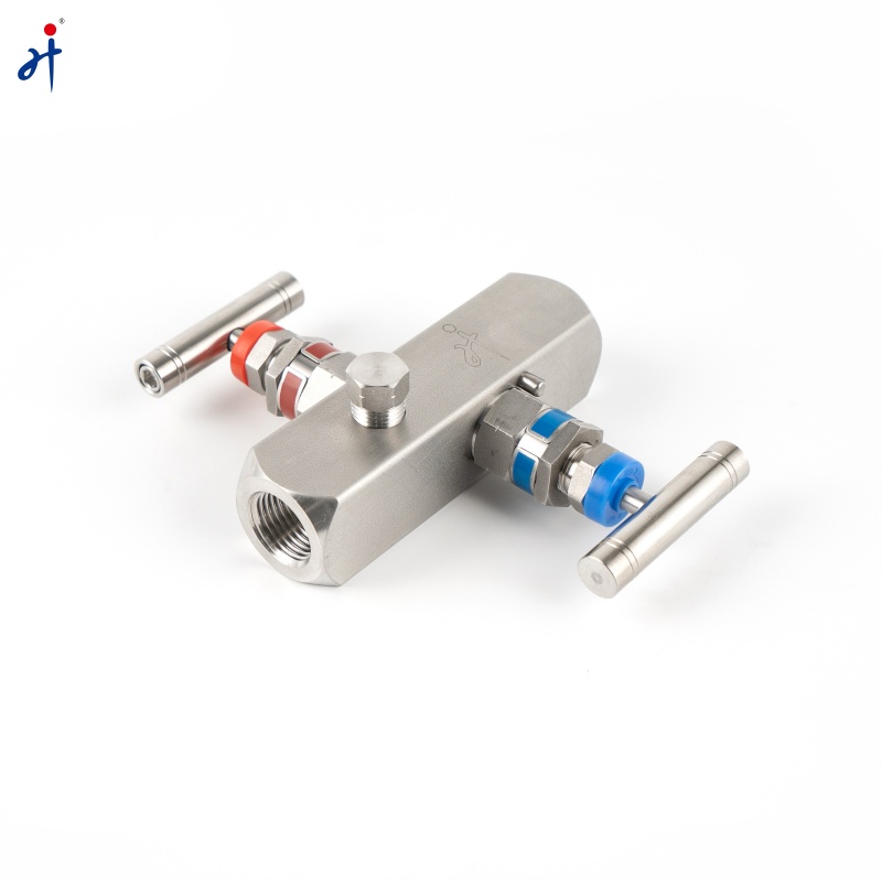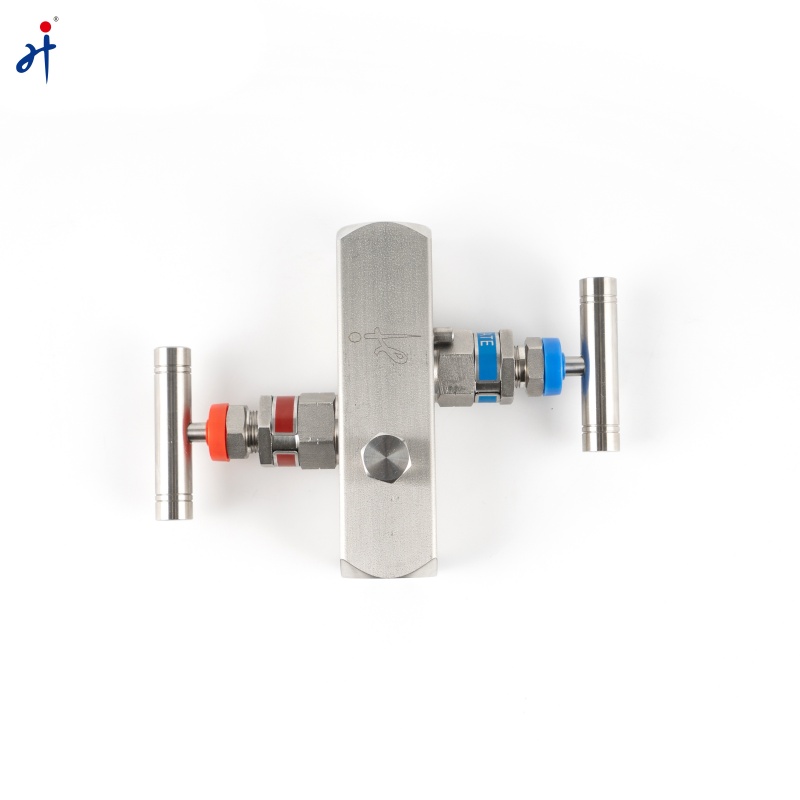 In-Line Two Valve Manifold made by Anhui Hongji (Valvento). Combine several valves in one body with multiple connections. This equipment assists pressure instruments such as pressure gauges, pressure transmitters, and differential pressure transmitters directly and indirectly in measuring and equalizing pressures, differential pressures, static, gauge, and variable in process instrumentation lines by bleeding, blocking, and calibrating.