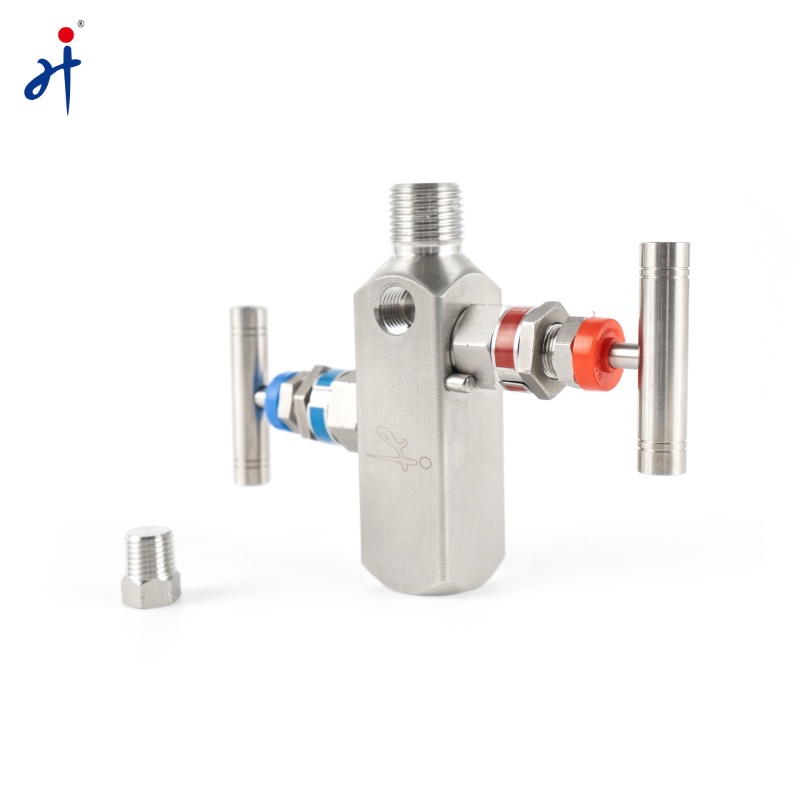 In-Line Two Valve Manifold made by Anhui Hongji (Valvento). Combine several valves in one body with multiple connections. This equipment assists pressure instruments such as pressure gauges, pressure transmitters, and differential pressure transmitters directly and indirectly in measuring and equalizing pressures, differential pressures, static, gauge, and variable in process instrumentation lines by bleeding, blocking, and calibrating.