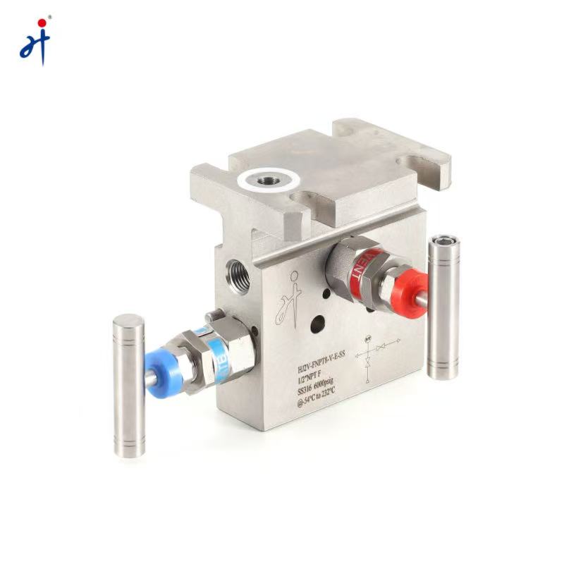 T Type Two Valve Manifold made by Anhui Hongji (Valvento) combine several valves in one body with multiple connections. This equipment assists pressure instruments such as pressure gauges, pressure transmitters, and differential pressure transmitters directly and indirectly in measuring and equalizing pressures, differential pressures, static, gauge, and variable in process instrumentation lines by bleeding, blocking, and calibrating.